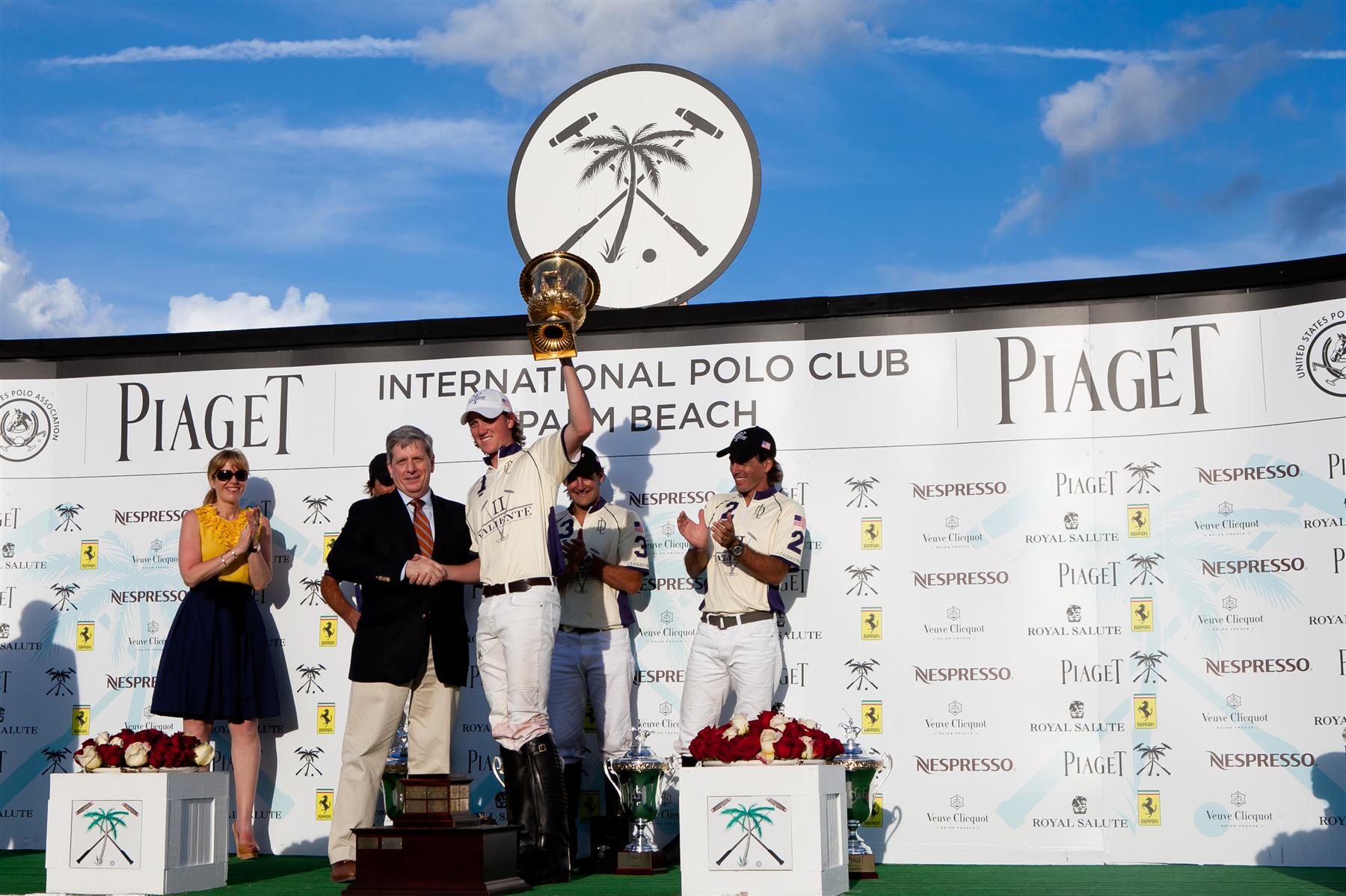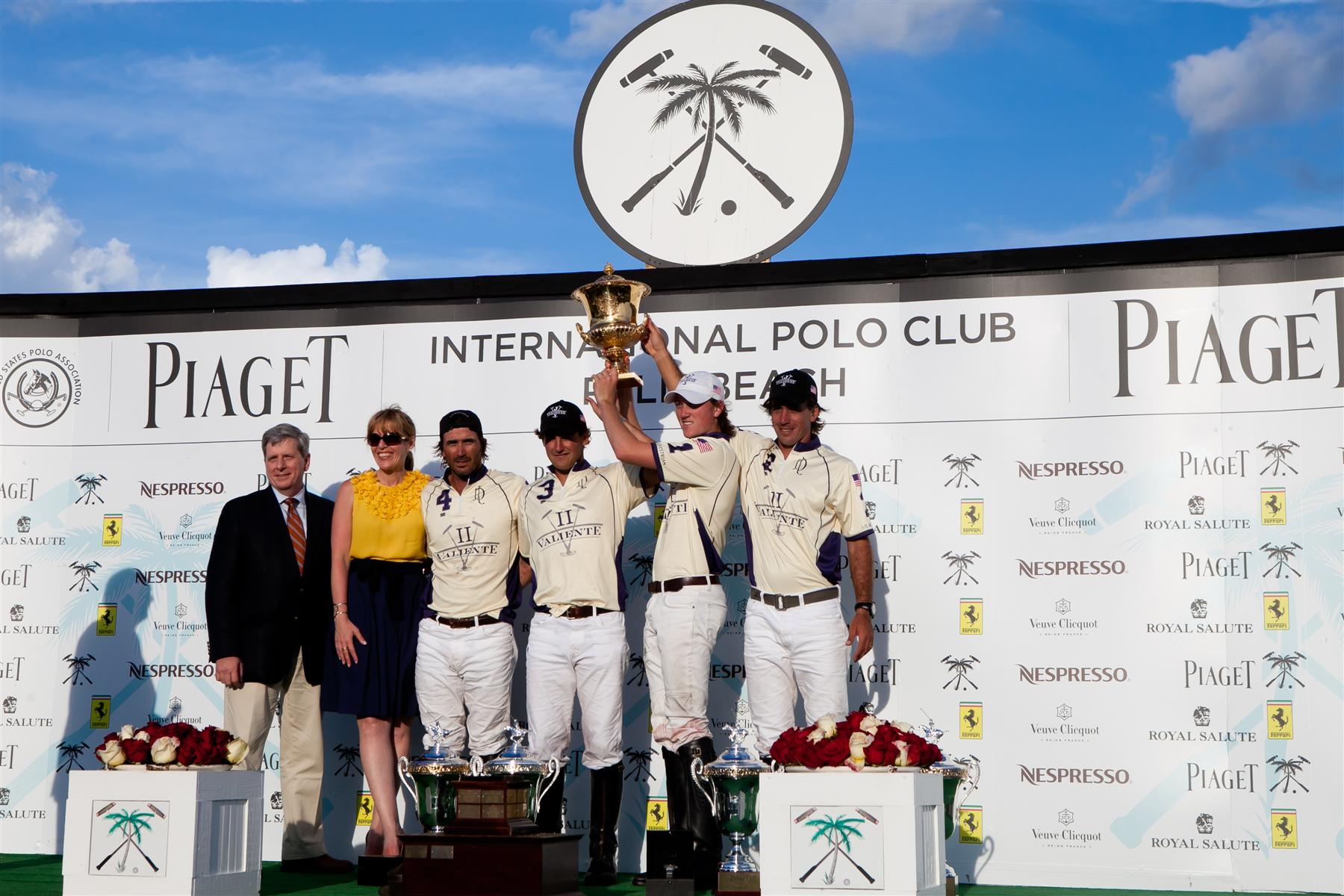 Robert Jornayvaz and his Valiente II teammates took revenge on their loss in the C. V. Whitney Cup finals earlier this month by scoring an 11-9 win over his father’s Valiente I foursome in the finals of the 2012 USPA Piaget Gold Cup at the International Polo Club in Wellington. The second leg of America’s Triple Crown of Polo came with quite a scare, however. After scoring six goals and leading his Valiente II team to a 10-8 lead over Valiente I, Adolfo Cambiaso was struck in the hand with the hard plastic ball and forced to leave the game.  Juan Martin Nero, Cambiaso’s Argentine Open Championship teammate, took his place for the remainder of the contest in the 11-9 Valiente II victory.